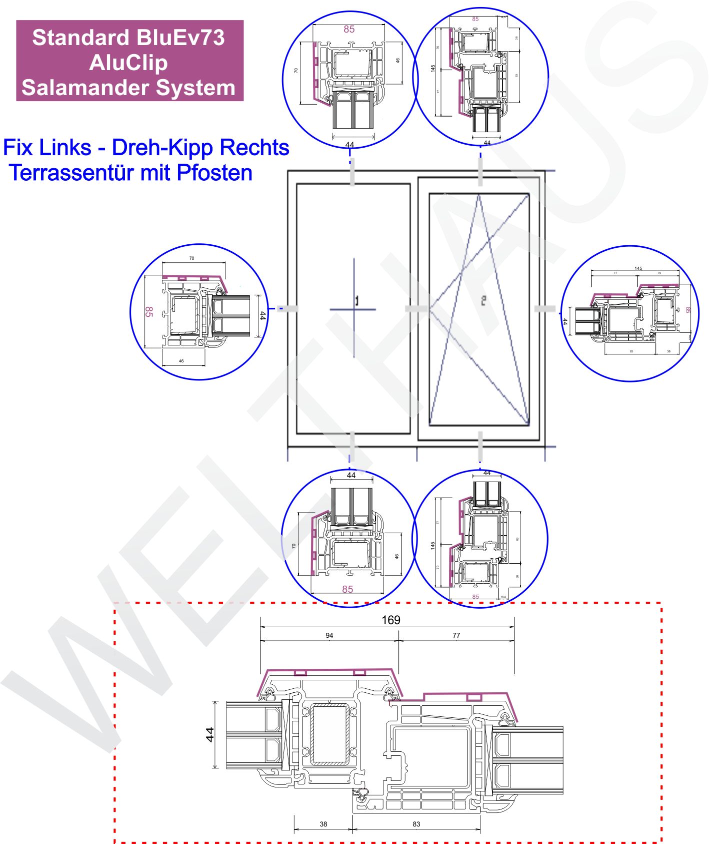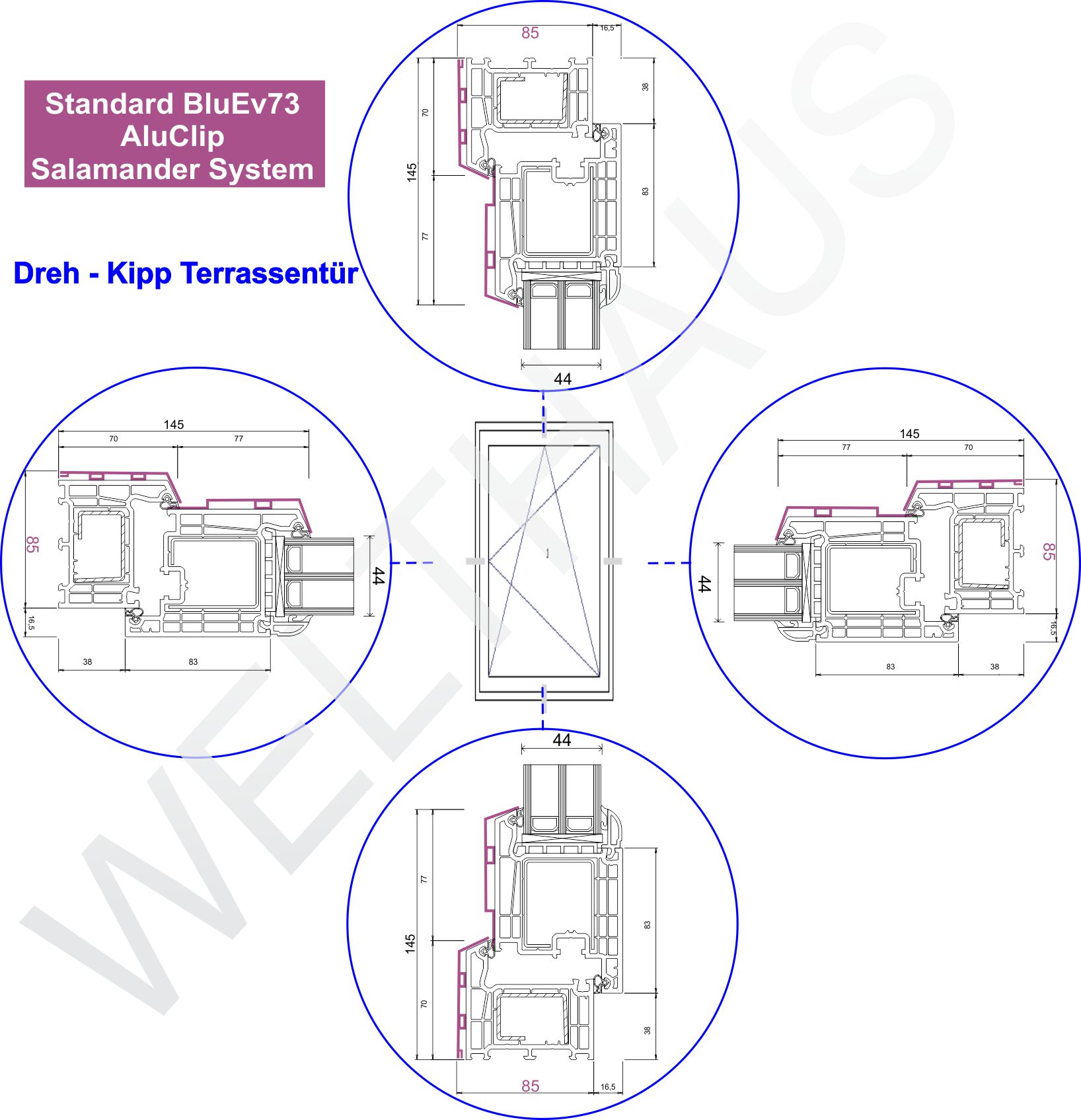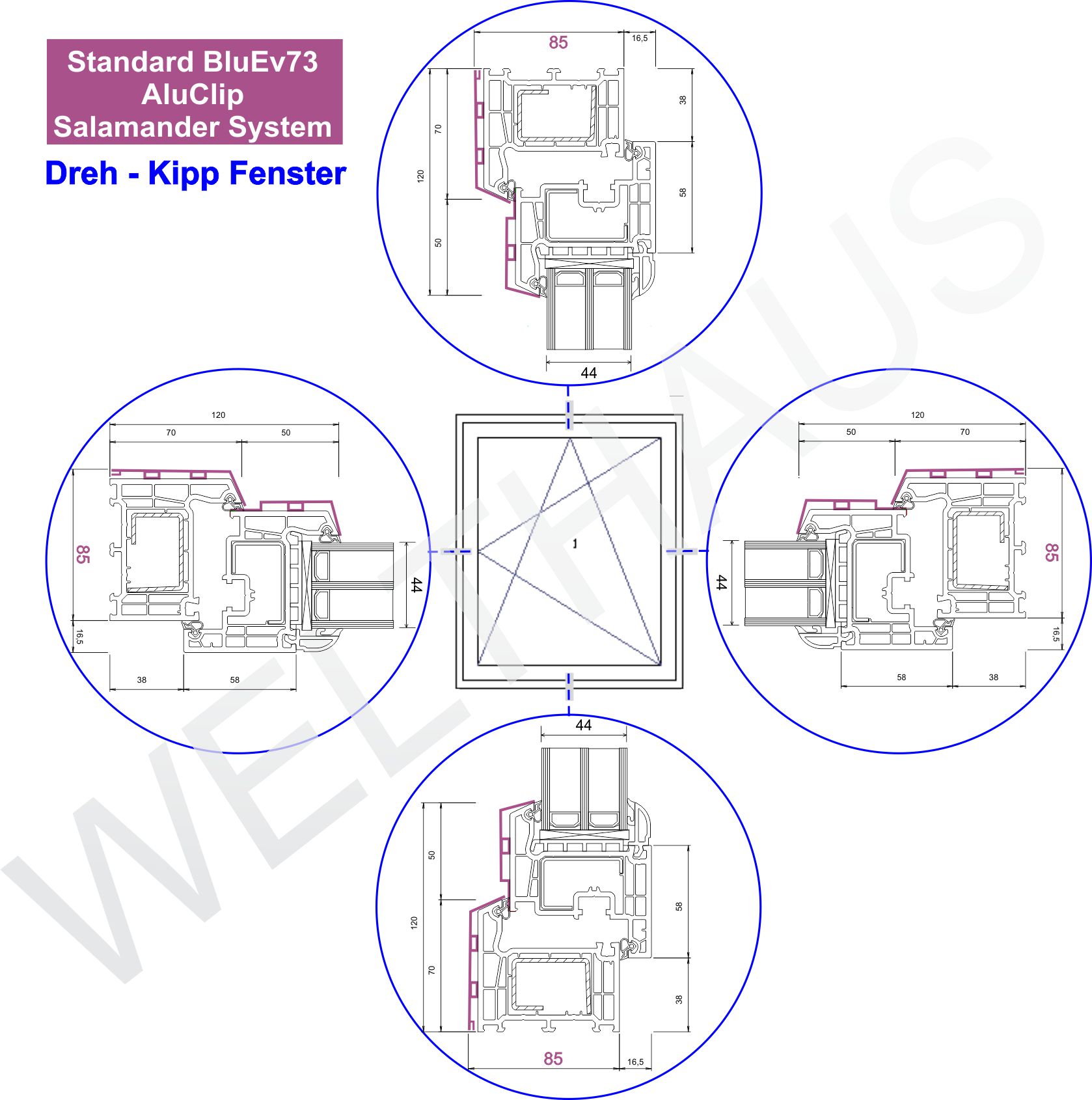 WeltHaus Fenster AluS 85 mit Salamander BlueEvo73